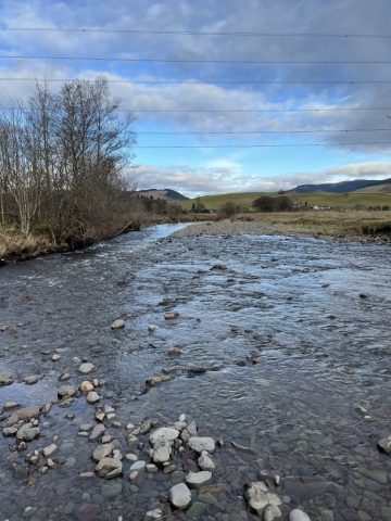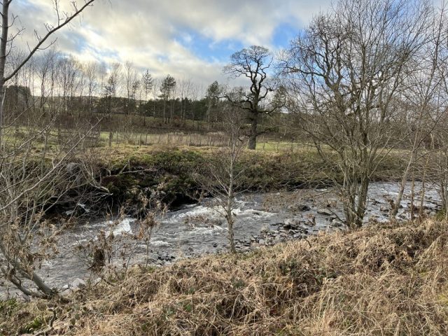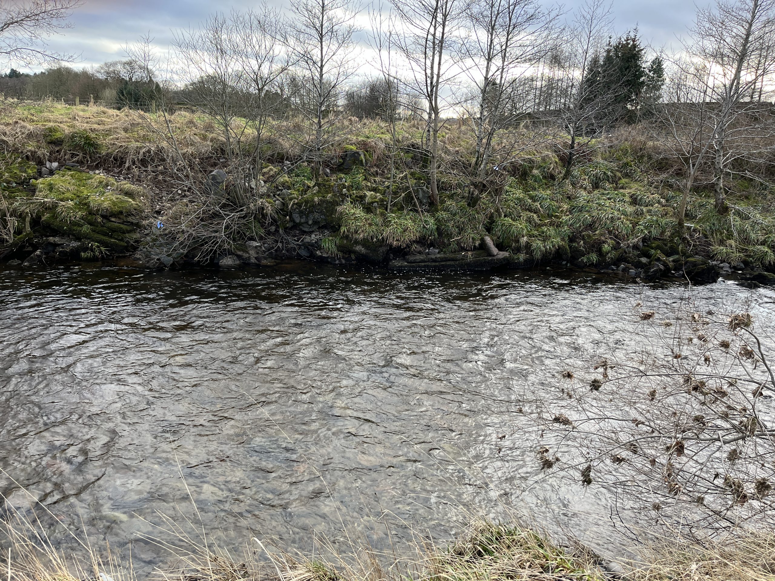 Photos of the River Evan downstream of the M74 bridge